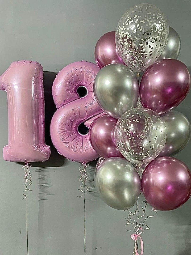 Набор шаров с гелием "Серебристо- розовый №2"
