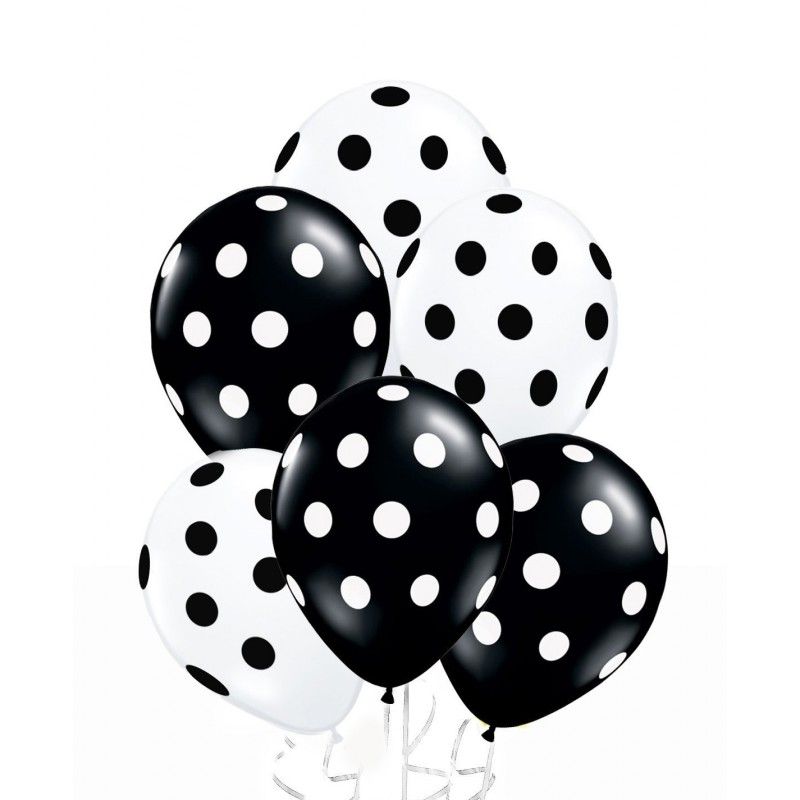Воздушные шары с гелием Черно-белые кружочки Размер: 12"/30 с обработкой хайфлотом, летают от 2-3 дней до 2-3 недель. Вы можете заказать шары с рисунком С днем рождения на свой праздник, украсив его!
