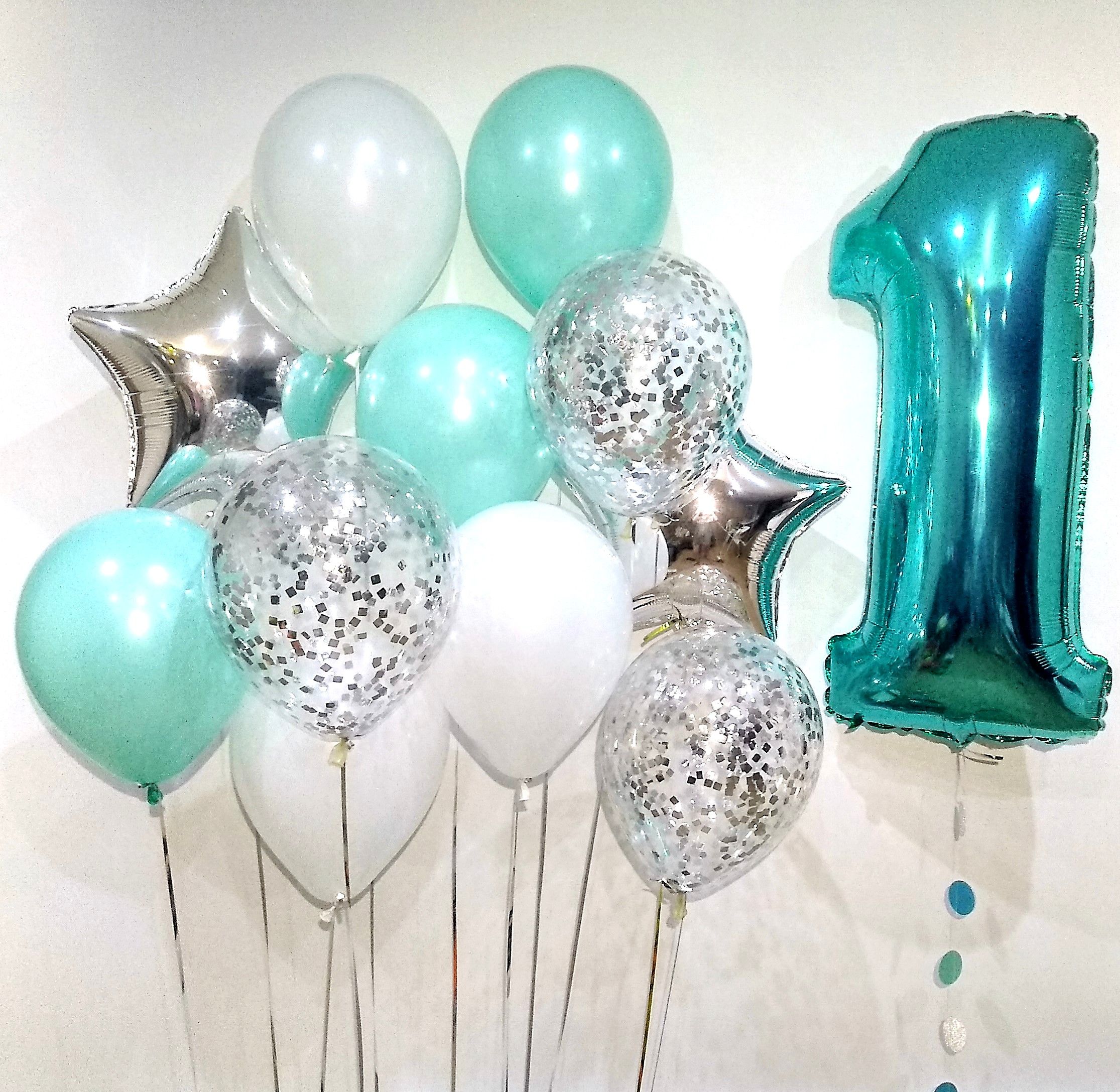 Состав набора: цифра фольгированная (любая, одна), фольгированные звезды с гелием - 2 шт, шары однотонные с гелием - 6 шт, шары с конфетти - 3 шт, грузики, гирлянда-круги, транспортировочный пакет,грузик