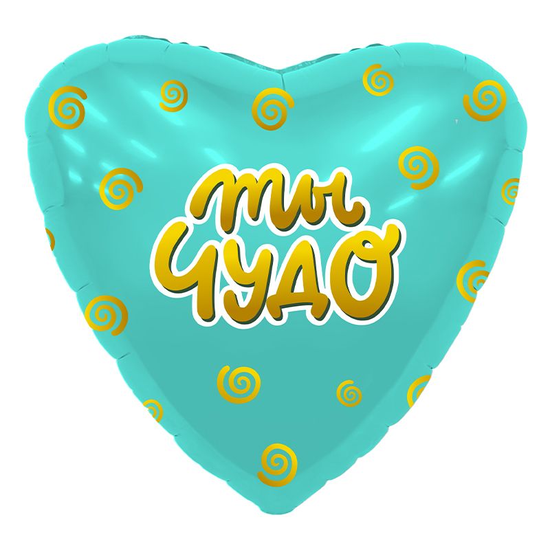 Нежное мятное сердце с золотой надписью Ты чудо - растопит любое сердечко! Будет отлично сочетаться с шарами в бирюзово-золотой гамме.