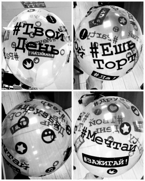 Воздушные шары с гелием "С днем рождения Хэштеги", с обработкой составом hi-float, летают от 2-3 дней до 2-3 недель.