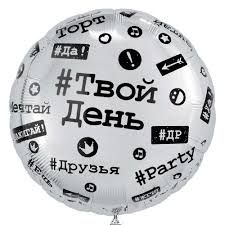 Шар фольгированный с гелием круг "С днем рождения! хештеги" 46см