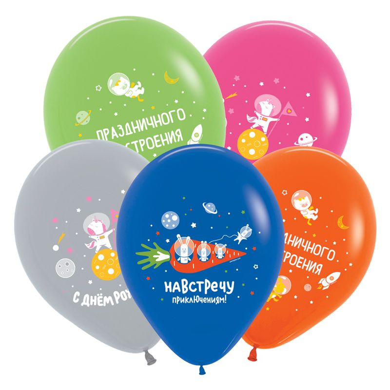 Воздушные шары с гелием "С днем рождения" животные космонавты 30см
