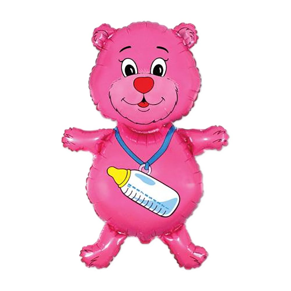 Шар фольгированный с гелием "Медвежонок с бутылочкой" для девочки