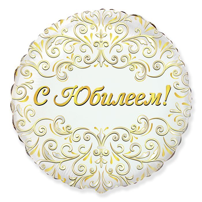 Фольгированный шар с гелием круг "С Юбилеем!" золото 45см