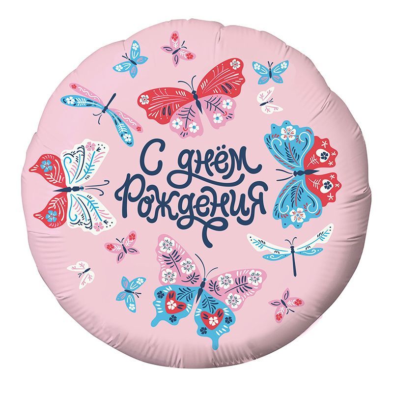 Фольгированная фигура с гелием "С Днем рождения!бабочки" 45см
