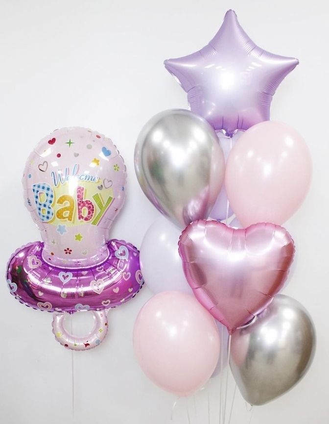 Набор шаров с гелием на выписку "С рождением дочки" (с соской)