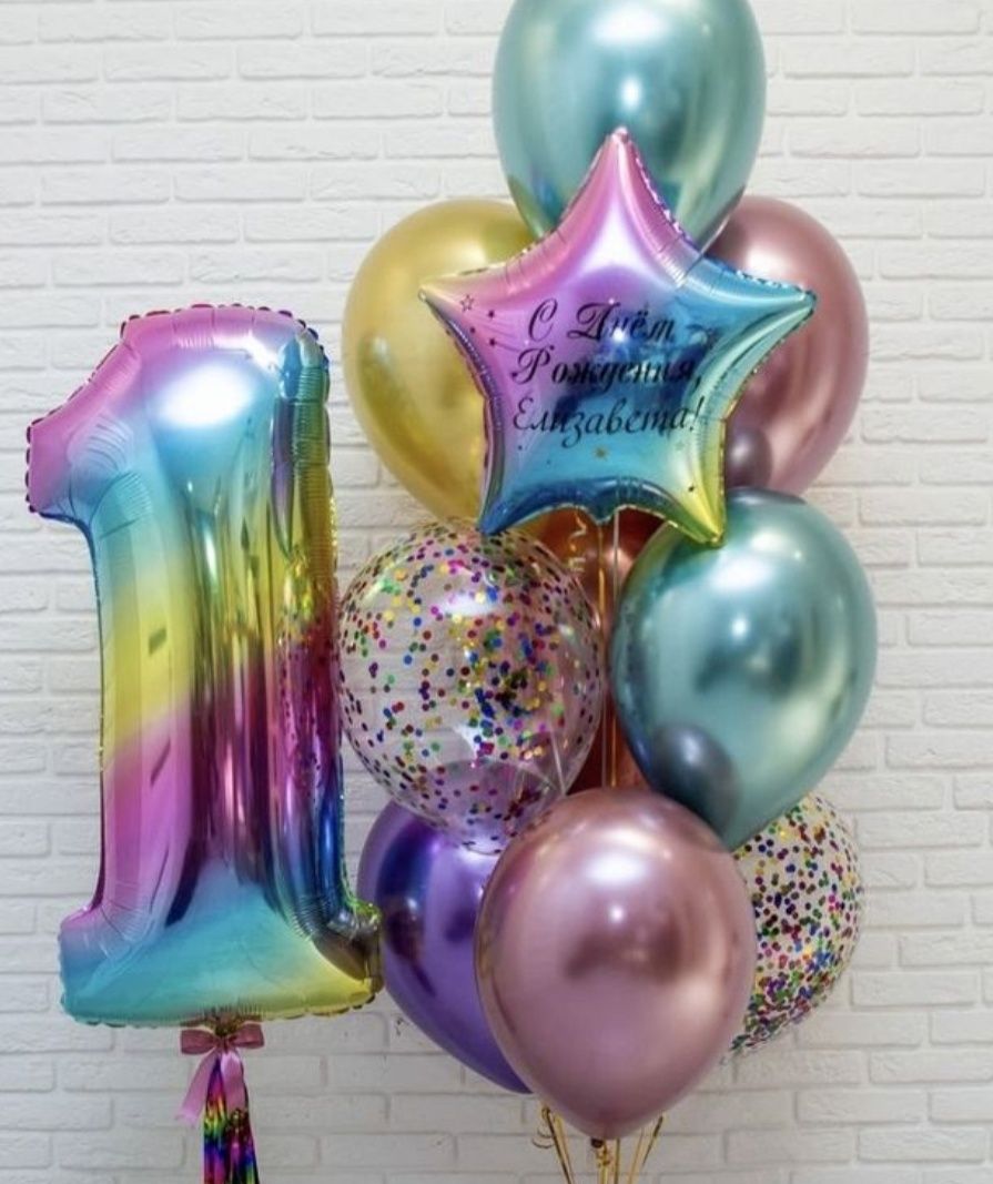 Набор шаров с гелием "Градиент" с цифрой на один годик