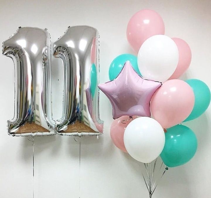 Состав набора шаров "Сладкий день рождения" две цифры: цифра фольгированная (любая, одна) с гелием 102 см - 2 шт, фольгированная звзеда с гелием 45 см - 1 шт, латексные шары однотонные с гелием 30 см - 10 шт, грузики ручной работы - 2 шт, пакеты транспортировочные.