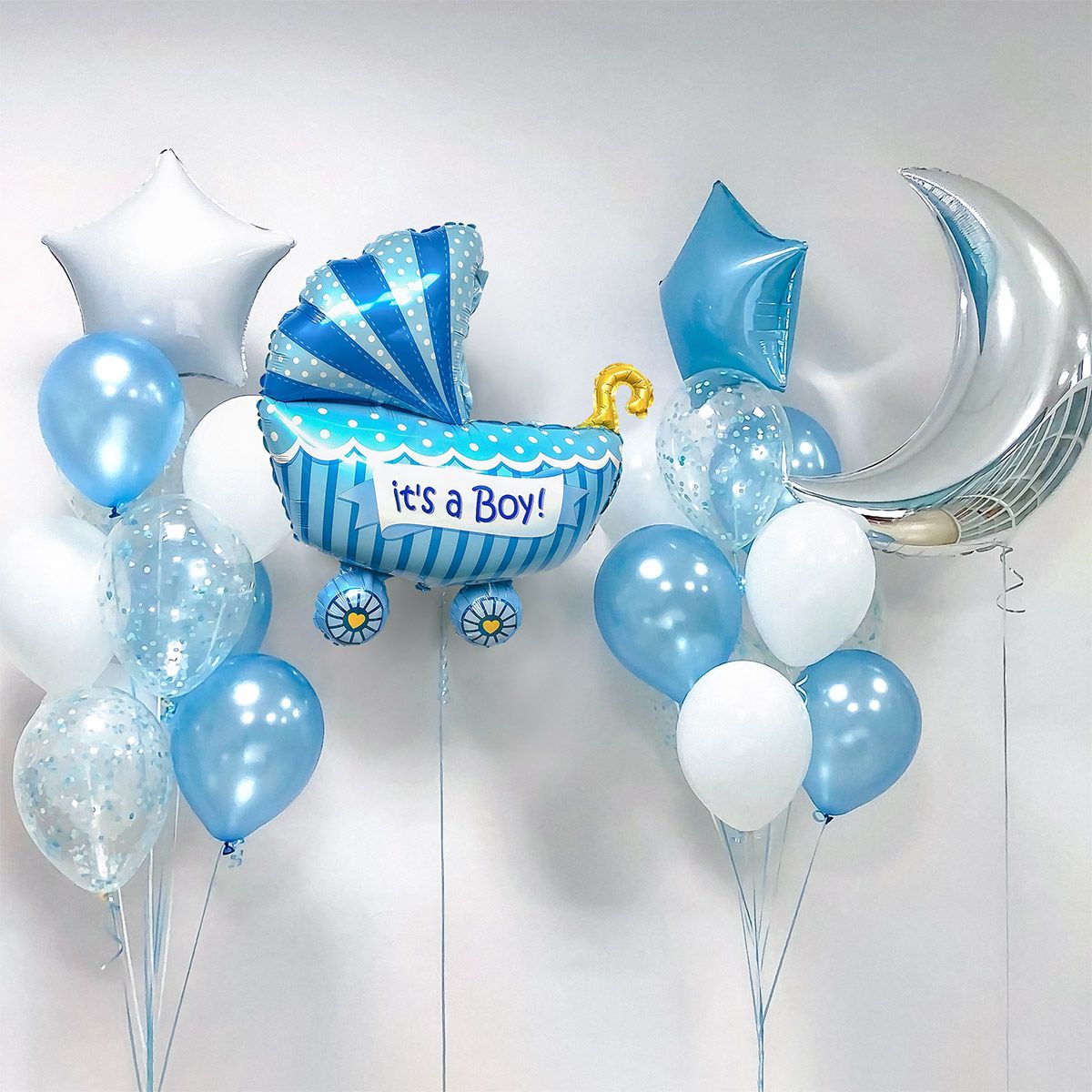 Набор шаров с гелием на выписку "Для мальчика с коляской и месяцем"