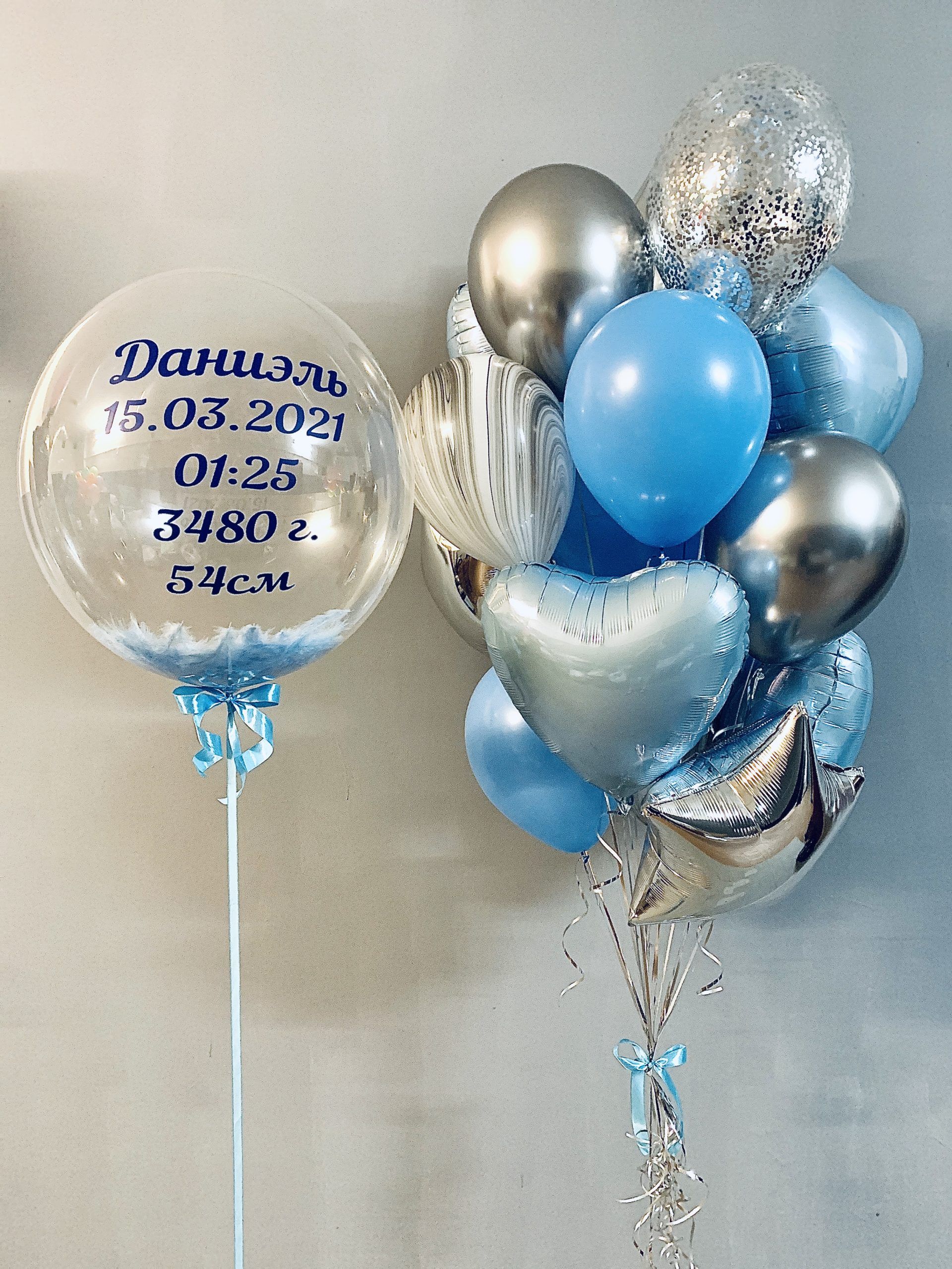 1 Баблс с перьями индивидуальной надписью (метрика) – 61 см